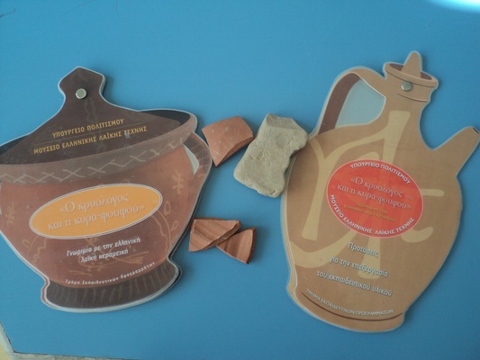 Θέλοντας να πραγματοποιήσουμε το όνειρο της Μελίνας Μερκούρη ένα μουσείο στο σχολείο δανειστήκαμε από το Μουσείο Λαϊκής Τέχνης τη μουσειοσκευή "Ο Κρυολόγος και η κυρά Φουφού".