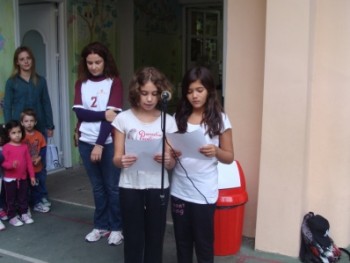 Επίσης στην προσευχή δύο μαθήτριες της Στ' διάβασαν τους παρακάτω στίχους για τους δασκάλους τους και όλοι μαζί τους ευχήθηκαν "Χρόνια Πολλά".