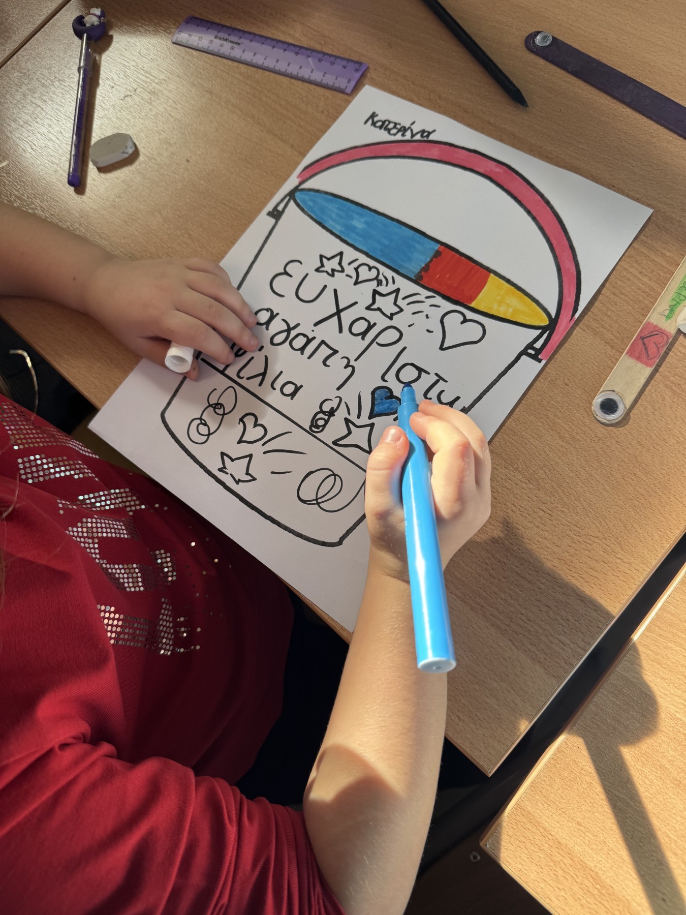 Τα παιδιά έκαναν δημιουργικές δράσεις και η ημέρα έκλεισε με την κοινή μας δέσμευση να κρατήσουμε την καλοσύνη ζωντανή όχι μόνο σήμερα αλλά κάθε μέρα: στο σχολείο, στο σπίτι, στη γειτονιά. Γιατί η καλοσύνη, ακόμη και στην πιο απλή μορφή της, έχει τη δύναμη να αλλάξει τον κόσμο.