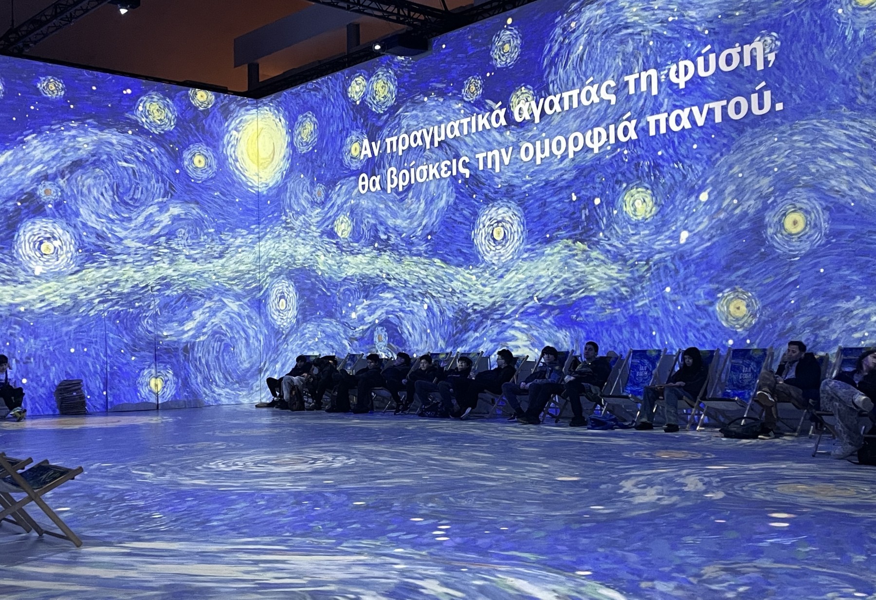 Οι μαθητές του σχολείου μας έζησαν μια ολιστική εμπειρία εμβύθισης στην τέχνη και ταξίδεψαν μέσα στους πίνακες του Van Gogh στην έκθεση The immersive Experience. Έμαθαν για την ζωή του και τους συμβολισμούς που ο ίδιος έβρισκε όσο αποτύπωνε την φύση και τα αστικά τοπία. «Ονειρεύομαι να ζωγραφίζω και μετά ζωγραφίζω το ονειρό μου» …