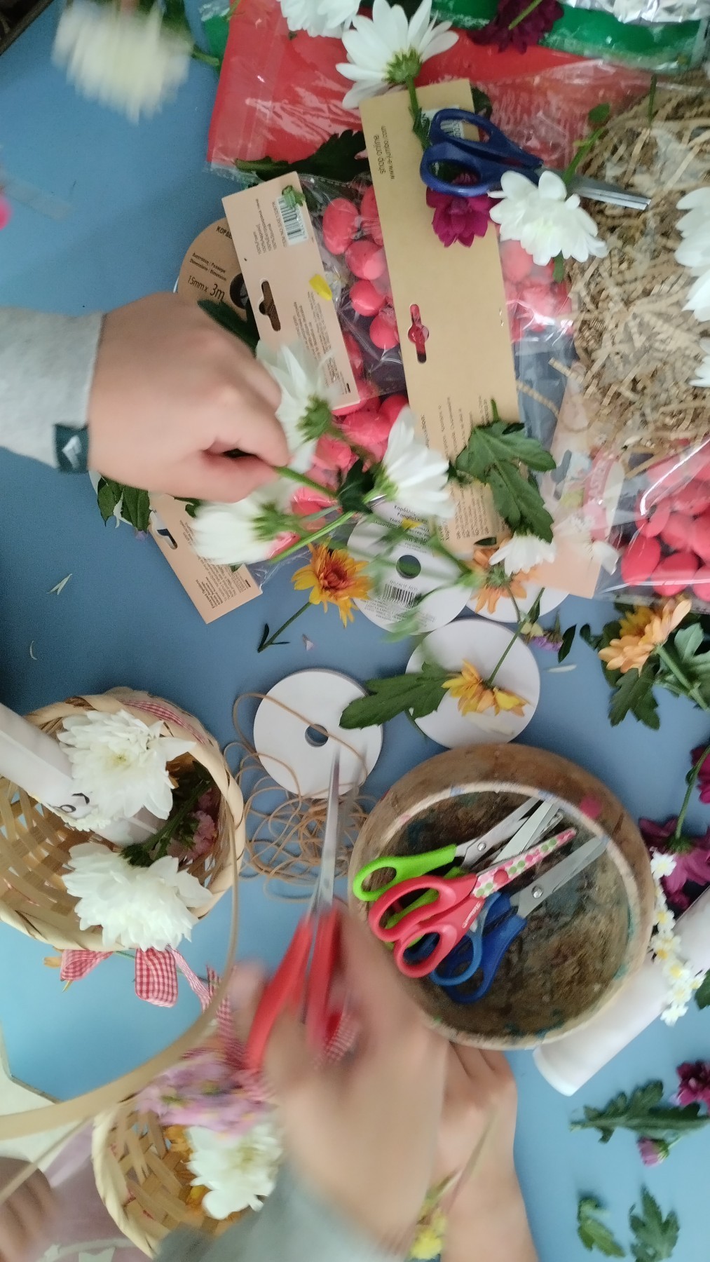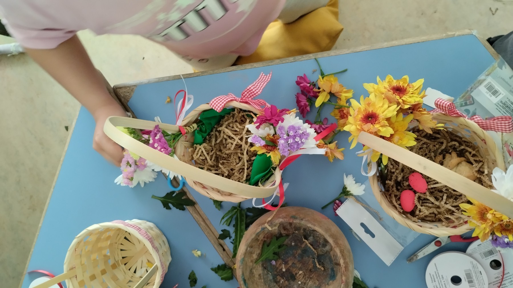 Στο μάθημα επιλογής "Τις ρίζες μου γνωριζω και ανθίζω" μια μητέρα μαθήτριας, μαζί με την κόρη της, μας παρουσίασαν το όμορφο πασχαλινό έθιμο "Λαζαρίτσες", όπως αυτό αναβιώνει στην περιοχή των Τρικάλων. Τα παιδιά στόλισαν καλαθάκια με φυσικά λουλούδια δημιουργώντας πολύχρωμες ανοιξιάτικες συνθέσεις. Στη συνέχεια τοποθέτησαν μέσα αυγά και λαζαράκια, μαθαίνοντας παράλληλα για τον συμβολισμό και τη σημασία τους. Στο τέλος, τραγούδησαν τα κάλαντα του Λαζάρου, γεμίζοντας τον χώρο με μελωδίες, μεταφέροντας το εορταστικό κλίμα της ημέρας.